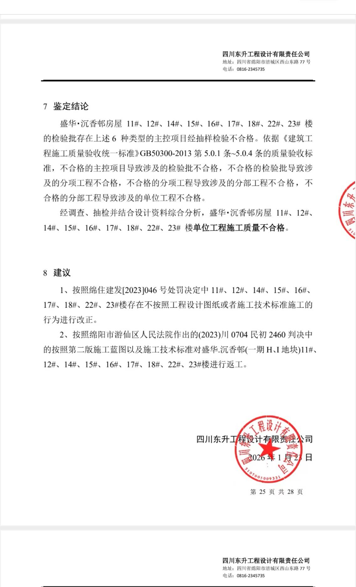 四川金通检测公司明确结论:“即便整改也无法达到设计要求和使用功能”。这一结论与绵阳市住建局行政处罚、游仙区法院生效判决、三方联合声明共同构成九洲建工违规的铁证链。